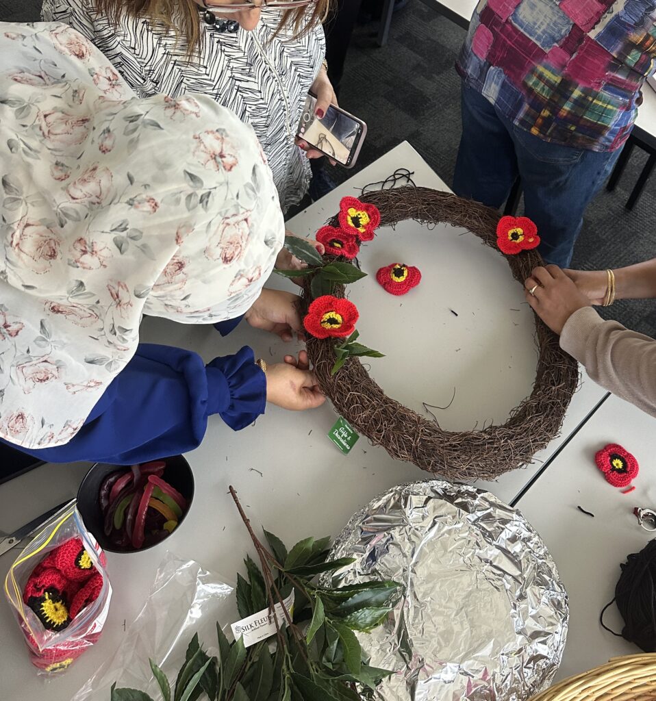 A group from Navitas Skilled Futures (NSF) Fairfield college have found ‘sisterhood’ and honoured the sacrifice of war veterans, crocheting hundreds of poppies to make a memorial wreath for ANZAC Day.